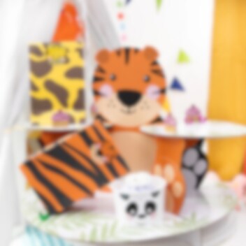 Verleihe deinem Desserttisch eine wilde Note mit diesem Muffinständer im Safari-Design! Mit einem verspielten Design, das einen niedlichen Tiger und einen Panda zeigt, ist er ein lustiges und praktisches Detail für tierliebende Partygäste. Perfekt, um Muffins, Cupcakes oder andere Süßigkeiten zu präsentieren. Der Ständer ist 44 cm hoch und 30 cm breit und eignet sich ideal für Safari- oder Tierpartys!