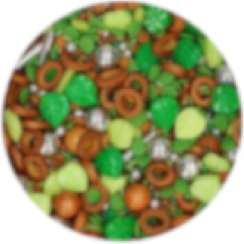 Verleihen Sie Ihren Backkreationen einen wilden, exotischen Touch mit dieser dschungelinspirierten Streuselmischung! Eine aufregende Kombination aus grünen Blättern, holzfarbenen Ringen und glänzenden Details sorgt für abenteuerliche Dekorationen auf Cupcakes, Torten und anderen Leckereien. Perfekt für Dschungelpartys und Motto-Backprojekte.