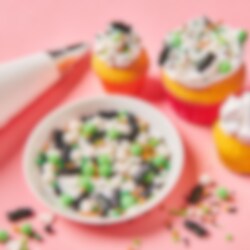 Feiern wie ein echter Fußballprofi mit dieser sportlichen Streuselmischung! Eine energiegeladene Kombination aus grünen, schwarzen und weißen Dekorationen – inklusive kleiner Fußbälle und funkelnder Perlen, sorgt für die perfekte Stimmung bei jedem Fußballfest. Ideal zum Verzieren von Cupcakes, Torten und anderen süßen Leckereien.