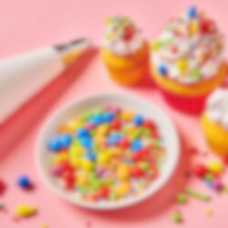 Feiern Sie stilvoll mit dieser farbenfrohen Geburtstagsmischung! Eine lebendige Kombination aus roten, gelben, blauen und grünen Dekorationen – ergänzt durch kleine Cupcakes und Ballons – verleiht Ihren Backwerken eine verspielte und festliche Note. Perfekt für Geburtstage, Partys und fröhliche Anlässe.
