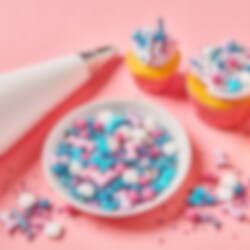 Entdecken Sie die Geheimnisse der Unterwasserwelt mit dieser schimmernden Meerjungfrauen-Streumischung! Eine traumhafte Kombination aus türkisfarbenen, rosa und lilafarbenen Dekorationen – ergänzt durch Meerjungfrauenschwänze, Muscheln und glänzende Perlen – verleiht Ihren Backkreationen einen märchenhaften Touch. Perfekt für Motto-Partys und fantasievolle Backideen.