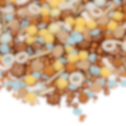 Kreieren Sie liebevolle Backwerke mit dieser charmanten Streuselmischung! Eine verspielte Kombination aus hellblauen, braunen und goldfarbenen Dekorationen – darunter kleine Hundeknochen und Herzen – macht sie perfekt für Tierliebhaber und Mottopartys. Ideal zum Verzieren von Cupcakes, Torten und anderen süßen Leckereien.