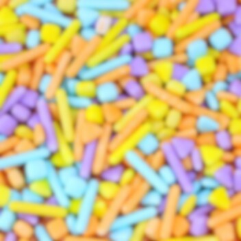 Zutaten: Dextrose, Maisstärke, Trennmittel: E470b, Farbstoff: E162, E160a, E160c, E100, E133, Überzugsmittel: E904, E903.