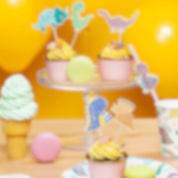 6 Cupcake-Toppers mit stilvollen Dinosauriermotiven. Perfekt zum Dekorieren von Torten und Cupcakes, um der Kinderparty eine extra gemütliche Note zu verleihen.