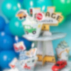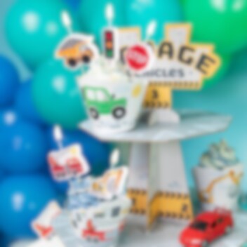 Diese Tortenkerzen mit einem Feuerwehrauto, Bagger, Muldenkipper, Stoppschild und einer Ampel machen die Geburtstagstorte extra spannend für alle kleinen Fahrzeugfans. Die Kerzen sind 3-4 cm groß und mit praktischen Holzstäbchen befestigt, um sie einfach auf der Torte zu platzieren.