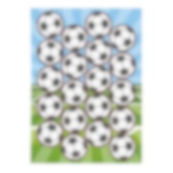 20 Muffindekorationen aus Oblaten mit Fußbällen. Perfekt für Fußball Kinderpartys! Die Muffindekorationen haben einen Durchmesser von etwa 4,5 cm.