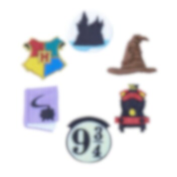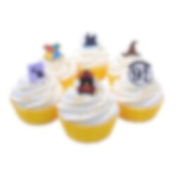 6 handgemachte und einzigartige Zuckerdekorationen mit Motiven aus Harry Potter und Hogwarts, mit denen Sie sowohl Cupcakes als auch Torten dekorieren können. Sie passen perfekt zu einer Harry Potter Party.