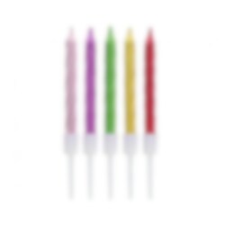 10 Kerzen in schönen Metallicfarben. Die Kerzen sind 6 cm hoch und sind ideal für Themenpartys und Kindergeburtstage.