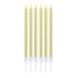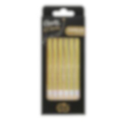 Diese Kerzen in schöner Goldfarbe sind die perfekte Ergänzung für jede festliche Torte. Jede Packung enthält 6 Kerzen mit einer Höhe von 13,5 cm und 6 Halterungen für eine einfache Verwendung.
