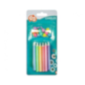 12 schöne Kerzen in Perlmuttfarben. Mit einer Höhe von 8 cm und passenden Haltern bieten diese Tortenkerzen eine raffinierte Note für die Torte.