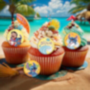 20 Muffindekorationen aus Fondant mit süßen Bildern von Lilo & Stitch. Mit den essbaren Muffinauflegern kannst du die Cupcakes oder Geburtstagstorte hübsch dekorieren. Die Muffinaufleger haben einen Durchmesser von etwa 3,4 cm und können direkt auf die Muffins gelegt werden. Mit Süßungsmitteln.
