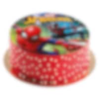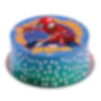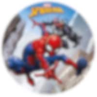 Tortenaufleger aus zuckerfreiem Fondant mit Spiderman-Motiv. Mit Süßungsmitteln. Der Tortenaufleger kann direkt auf die Torte gelegt werden und hat einen schärferen Druck als ein Tortenaufleger aus Oblaten. Der Tortenaufleger hat einen Durchmesser von etwa 20 cm.
