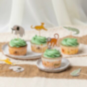 60 Stück süße Muffinförmchen vom Hersteller Anniversary House mit Motiven verschiedener Safaritiere. Die Größe der Muffinförmchen beträgt 5 x 3 cm.