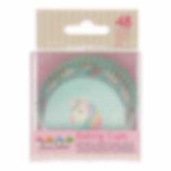 48 Muffinförmchen in einer schönen mintgrünen Farbe und mit einem niedlichen Einhornmotiv.