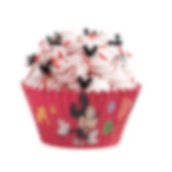 25 coole Muffinförmchen mit lustigem Mickey Maus-Motiv. Verwenden Sie diese, um ein paar schöne Muffins für die Kinderparty zu backen. Der Bodendurchmesser der Muffinförmchen beträgt ungefähr 5 cm.
