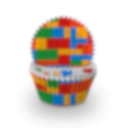 60 Stück bunte Muffinförmchen vom Hersteller Anniversary House mit Motiven von verschiedenen Bausteinen. Die Größe der Muffinförmchen beträgt 5 x 3 cm.