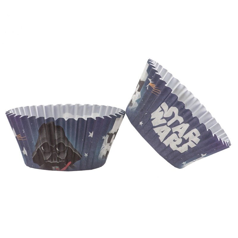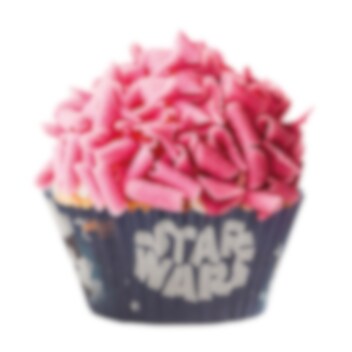 25 Muffinförmchen mit Motiven aus Star Wars. Diese sind perfekt zum Backen von Muffins für die Star Wars-Kinderparty. Die Formen sind 5 cm am Boden.