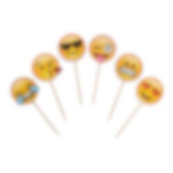 24 kleine Piecker mit verschiedenen Emoji-Motiven auf Holzstäbchen. Ein Set mit 6x4 verschiedenen Emojis, welche sich sich perfekt für Torten, Cupcakes, Muffins und anderen Backwaren eignen. Etwa 7 cm lang.