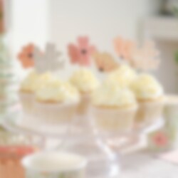 12 Cupcake-Dekorationen, die Ihren Backwaren ein sommerliches Gefühl verleihen. Jede Packung enthält 4 Dekorationen mit dem Text "Hello Baby" und 8 Dekorationen mit verschiedenen süßen Blumen.