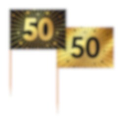 Feiern Sie den 50. Geburtstag mit Stil. Diese festlichen Party Picks in Schwarz und Gold sind perfekt als Deko für Cupcakes, Snacks, Kuchen oder andere Leckereien am Buffet.