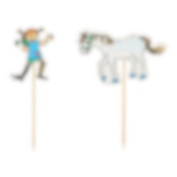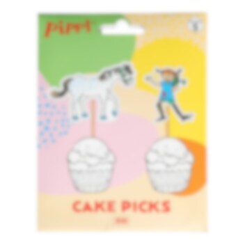 Die Packung enthält insgesamt 10 Kuchenstecker, fünf mit Pippi und fünf mit Kleiner Onkel. Sie bestehen aus Papier und Holz und sind ca. 10 cm lang.