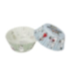 24 charmante Muffinförmchen in Hellblau und Hellgrün mit Mumin-Motiven – ein lustiges Detail, das Ihre Muffins noch einladender macht.