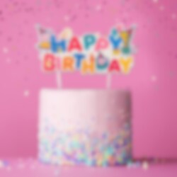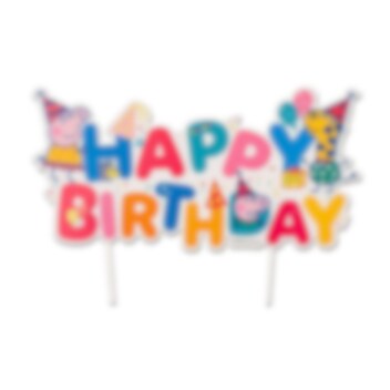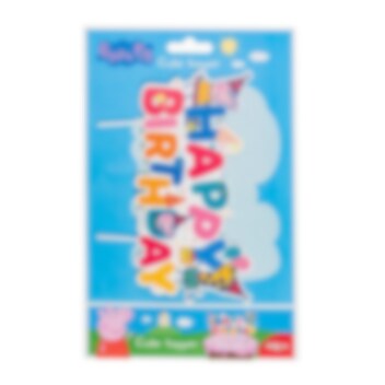 Tortentopper aus Pappe mit dem Text "Happy Birthday" und süßen Peppa-Wutz-Motiven. Höhe: 13 cm.