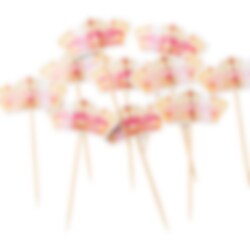 10 Cupcake Topper in Form von Prinzessinnenkronen. Lässt sich gut auf Ihren Backwaren platzieren. Die Prinzessinnenkronen bestehen aus Pappe, sitzen auf einem Holzstab und sind 8 x 5 cm groß.