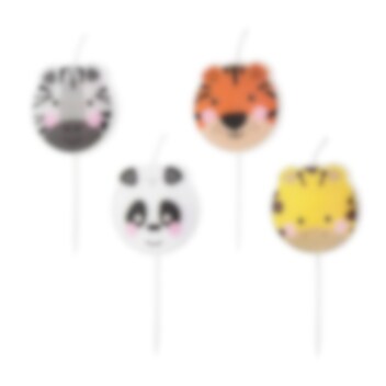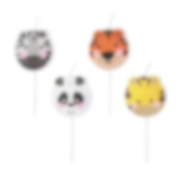 4 Kerzen mit süßen Safaritieren – perfekt, um der Torte eine lustige Note zu verleihen! Die Kerzen sind 5 cm hoch und jedes Tiermotiv hat einen Durchmesser von 3 cm. Eine ausgezeichnete Wahl für eine Safari-Mottoparty.