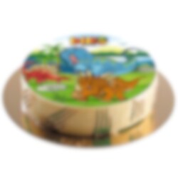 Wunderschöner Tortenaufleger aus Oblate mit niedlichem Dinosaurier-Motiv. Backen Sie eine ganz persönliche Torte für den Kindergeburtstag. Der Tortenaufleger mit 20 cm Durchmesser lässt sich einfach anwenden. Tortenaufleger aus Oblate sind gluten- und laktosefrei und enthalten keinen zugesetzten Zucker.