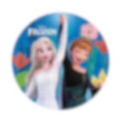 Tortenaufleger aus Fondant mit Anna und Elsa. Der Tortenaufleger kann direkt auf die Torte gelegt werden und hat einen schärferen Druck als ein Tortenaufleger aus Oblaten. Der Tortenaufleger hat einen Durchmesser von ca. 15,5 cm. Mit Süßungsmitteln.