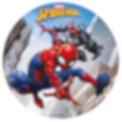 Tortenaufleger aus Fondant mit Spiderman-Motiv. Der Tortenaufleger kann direkt auf die Torte gelegt werden und hat einen schärferen Druck als ein Tortenaufleger aus Oblaten. Der Tortenaufleger hat einen Durchmesser von ca. 15,5 cm. Mit Süßungsmitteln.
