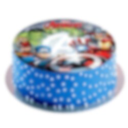 Cooler und farbenfroher Tortenaufleger aus Oblate mit Motiven der Superhelden Hulk, Thor, Iron Man und Captain America aus den Avengers. Backen Sie eine ganz persönliche Torte für den Kindergeburtstag. Der Tortenaufleger mit 20 cm Durchmesser lässt sich einfach anwenden.
