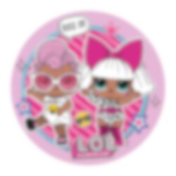 Tortenaufleger aus Waffeln mit einem wirklich schönen Motiv aus der Serie LOL Surprise. Backen Sie eine eigene Torte mit Hilfe dieses Tortenauflegers für die Kinderparty mit dem Thema "Lol Surprise". Der Tortenaufleger kann nun auf der Torte platziert werden.