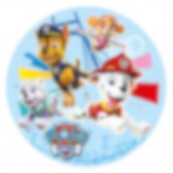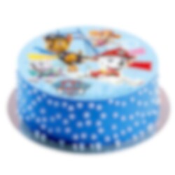 Bunter Tortenaufleger aus zuckerfreiem Fondant mit Motiven der Charaktere aus der Nickelodeon TV-Serie Paw Patrol. Der Tortenaufleger kann direkt auf die Torte platziert werden und hat einen schärferen Druck als ein Tortenaufleger aus Oblaten. Der Tortenaufleger hat einen Durchmesser von etwa 16 cm.