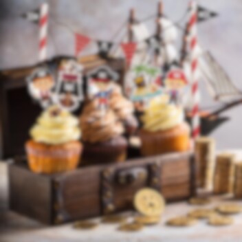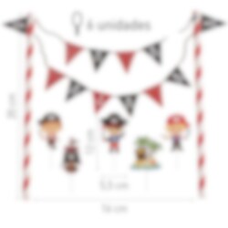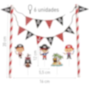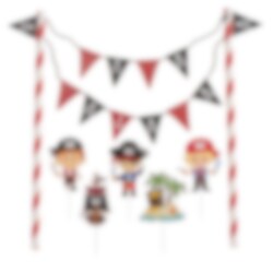 Verleihe der Geburtstagstorte echtes Piratenflair mit diesem Tortendeko-Set! Mit Piraten, einer Schatzkarte, einer Piratenflagge und einer Wimpelkette wird die Torte Teil eines aufregenden Seeräuberabenteuers. Die Wimpelkette ist 20 cm hoch, während die Kuchendekorationen zwischen 5,5 und 12 cm groß sind – perfekt für kleine Seeräuber, die Piratenpartys lieben!