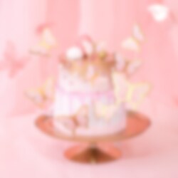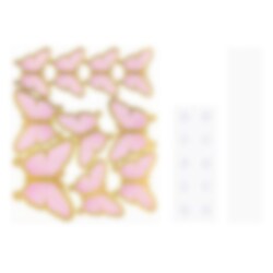 10 schöne Tortendekorationen in Form von rosa Schmetterlingen mit eleganten, goldfolierten Details. Das Set enthält 10 flexible, dünne Stäbe und 10 Klebepunkte, mit denen Sie die Schmetterlinge einfach auf Ihrem Kuchen befestigen und arrangieren können. Die Größe der Schmetterlinge variiert zwischen 5 und 9 cm.