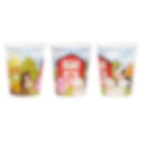 6 Pappbecher im Bauernhof-Design, die die Tischdekoration für den Kindergeburtstag besonders verspielt machen. Die Becher sind mit niedlichen Bauernhoftieren, einer roten Scheune und einem ländlichen Motiv verziert, das perfekt zu einer Bauernhof-Geburtstagsparty passt. Sie eignen sich hervorragend zum Servieren von Saft, Limonade oder anderen Getränken und sind eine dekorative Ergänzung auf dem Geburtstagstisch. Die Becher sind 9 cm hoch und fassen 220 ml.