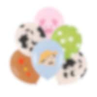 6 Luftballons mit Bauernhof-Motiven, die eine verspielte und farbenfrohe Dekoration für den Kindergeburtstag sind. Die Luftballons haben verschiedene Motive wie Kuh, Schwein, Huhn, Blumen und Bauer, was perfekt ist, um eine festliche Atmosphäre für eine Bauernhof-Mottoparty zu schaffen. Die Luftballons sind aufgeblasen etwa 30 cm groß und können mit Luft oder Helium gefüllt werden.