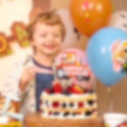 Diese Papiergirlande mit dem Schriftzug Happy Birthday ist eine charmante Dekoration für den Kindergeburtstag im Bauernhof-Thema. Die Buchstaben sind wie kleine Holzzäune mit farbenfrohen Details gestaltet und eignen sich perfekt, um eine verspielte und festliche Atmosphäre im Raum zu schaffen. Die Girlande ist 182 cm lang, die Buchstaben sind 17 cm hoch und das Set enthält eine 5 Meter lange Schnur. Sie eignet sich gut zum Aufhängen über dem Geburtstagstisch, an einer Wand oder am Geschenktisch.