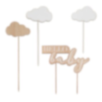 4 Cake Toppers aus Holz mit verschiedenen niedlichen Hello Baby-Motiven. Perfekt zum Verzieren der Torte, wenn es Zeit für eine Babyparty ist. Sie sind zwischen 6 und 12 cm hoch.
