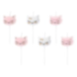 6 schöne Tortenkerzen mit Motiven von 3 verschiedenen Arten süßer Katzen in den Farben Rosa und Weiß. Dekorieren Sie die Torte damit, wenn eine Kinderparty stattfindet. Perfekt für die Kinderparty mit dem Thema Katze. Die Kerzen sind 5 cm hoch.