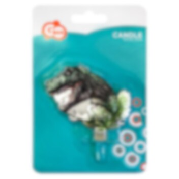 Coole Tortenkerze in Form eines T-Rex mit schicken metallischen Details für die Torte. Die Tortenkerze ist etwa 9 x 8 cm groß.