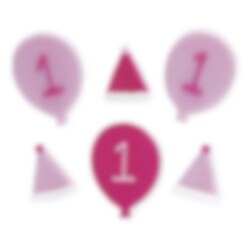 Diese 6 Zuckerdekorationen in Form von Luftballons und Hüten in Rosa mit Motiven der Zahl "1" sind hervorragend zum Backen vor der 1. Geburtstagsfeier geeignet. Verleihen Sie Ihren Backwaren eine besondere Note und sorgen Sie für Begeisterung auf der Feier.