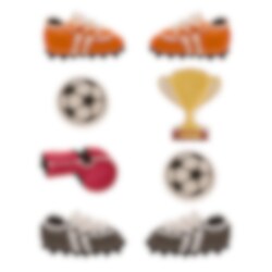 Diese detailreichen Zuckerdekorationen im Fußball-Design sind perfekt, um eine Gewinner-Torte oder Cupcakes für kleine und große Fußballfans zu gestalten. Das Set enthält 8 Dekorationen in Form von Fußbällen, Fußballschuhen, Pokalen und anderen sportlichen Motiven.