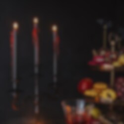 Diese schwarzen Stabkerzen wirken zunächst elegant, bis du sie anzündest. Dann beginnt rotes Wachs wie Blut an der Kerze herunterzulaufen, was einen gruseligen und dramatischen Effekt erzeugt. Sie sind ideal für ein Halloween-Dinner, eine Vampirparty oder als düsteres Detail auf dem Tisch.