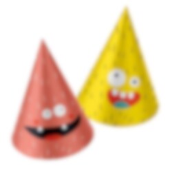 Diese süßen Monster Partyhüte bieten eine farbenfrohe und spielerische Note für Kindergeburtstage, besonders passend für Halloween. Die Hüte kommen in einem 6er Pack und du montierst sie einfach selbst. Besteht aus Pappe.