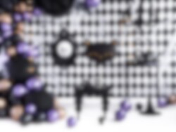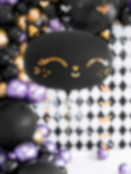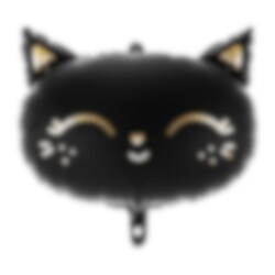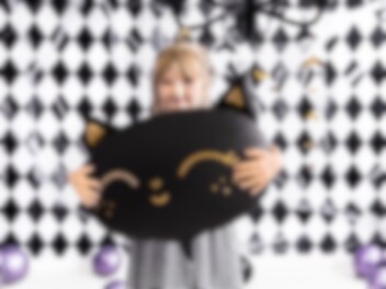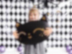 Folienballon in Form einer mattschwarzen Katze mit folierten Golddetails. Eine süße Dekoration für Geburtstagspartys und Halloweenpartys. Der Ballon ist aufgeblasen etwa 48 x 36 cm groß und kann mit Luft oder Helium gefüllt werden.