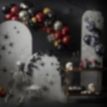 Eine stilvolle Girlande mit schwarzen Efeublättern, die eine gruselige und zugleich elegante Halloween-Atmosphäre schafft. Ideal zum Dekorieren von Tischen, Regalen oder Wänden und perfekt, um dem Raum einen festlichen und düsteren Look zu verleihen. Die Girlande ist 1,8 m lang und aus Kunststoff gefertigt.