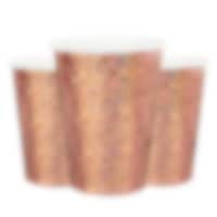 10 schöne, holographische Pappteller, die in Roségold glitzern und schimmern. Die Teller sind etwa 22,5 cm groß.